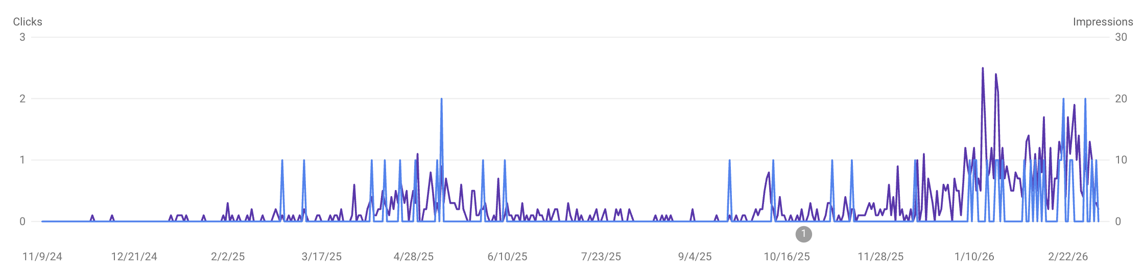 Google Search Console: NYC queries, impressions over time | tap to view full size